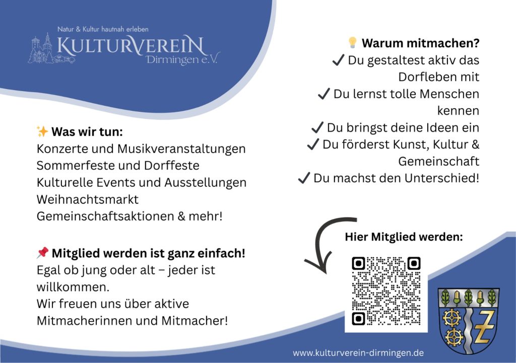 Herzlich Willkommen auf der Homepage des Kulturvereins Dirmingen e.V 12. Juli 20259. Oktober 2025 Frank Klein