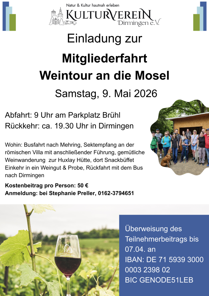 9. Mai: Mitgliederfahrt an die Mosel